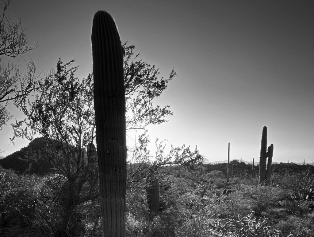 A few monochrome iPhone photos near sunset in Saguaro National Park. Working with two medium format cameras in black and white and color slide film as well, but those take time.