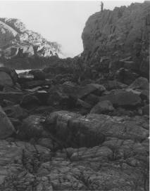Previous ImageNext Image scan-chile2019 Sunset light pouring through the gaps into the rock pools in Los Molles, Chile.